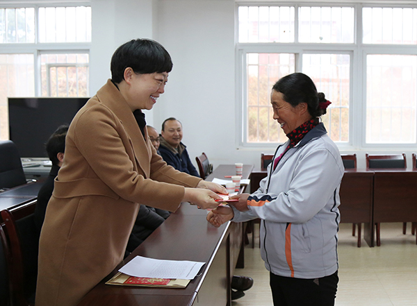 副校长李莉为拖木村大学生家长发放慰问金