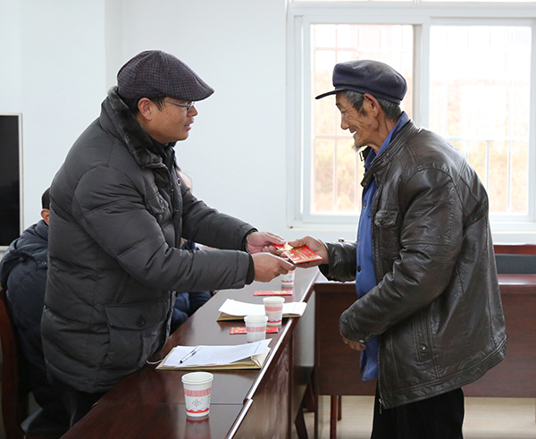 党委副书记王志刚为拖木村大学生家长发放慰问金