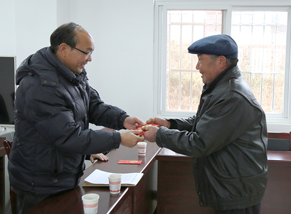 副校长张永刚为拖木村大学生家长发放慰问金